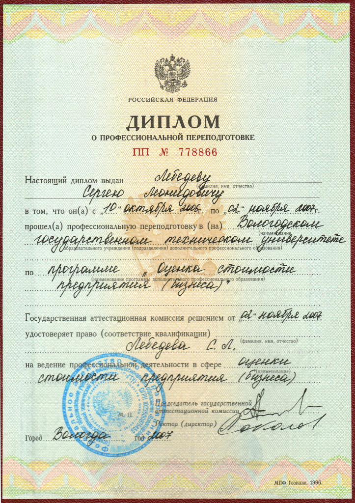 СВИДЕТЕЛЬСТВО Вологодской торгово-промышленной палаты